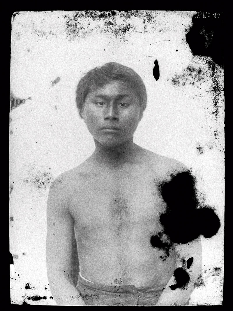 Fotografía del joven yámana Maish Kensis, quien muere prisionero en el Museo de La Plata (1894).