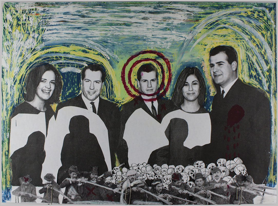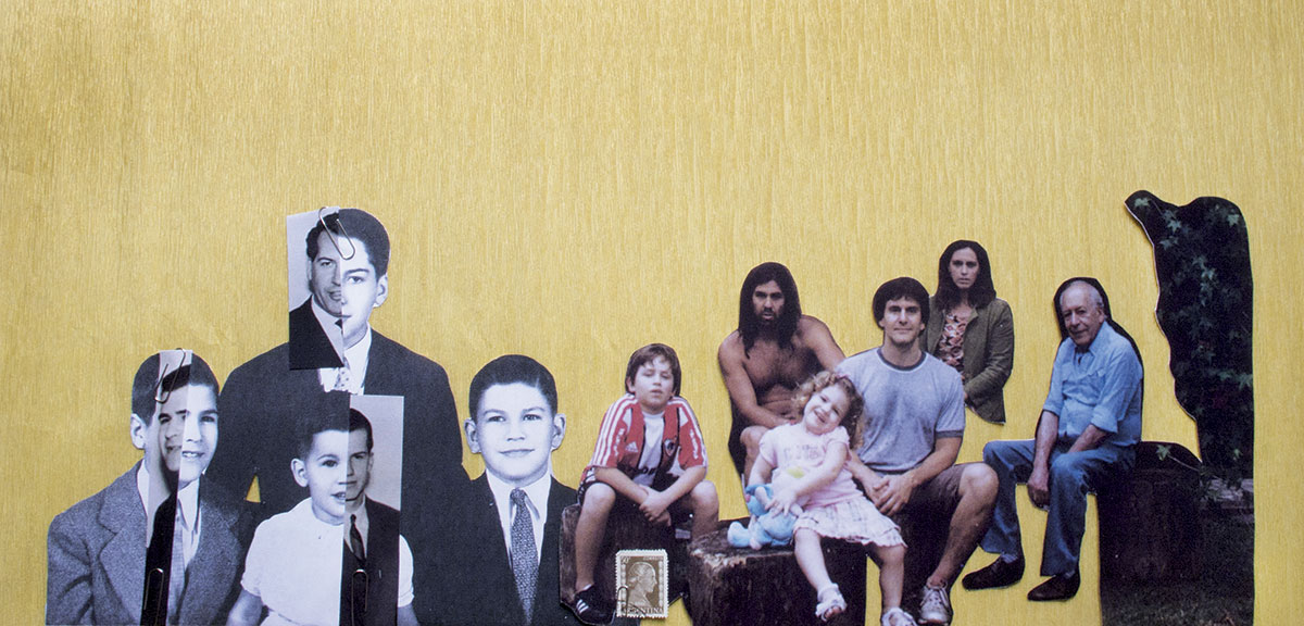 Lucila juega (si se puede jugar sin alegría) a mezclar los rasgos familiares para imaginar a su padre. Nuevamente, lo que queda de manifiesto es el propio artificio. Pero esta vez Lucila apela también al grotesco, cuando compone una foto de familia monstruosa, desencajada, descoyunturada. El grotesco emerge como gesto crítico vuelto sobre la propia práctica de filiarse y duelar.