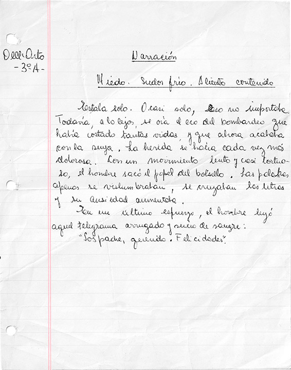 “…Y como a la media hora lo sacan a Rodas y el gangoso ese le dice: ‘hijo de puta, así que estuviste en Quilmes poniendo letreros’. Y por ahí siento como un martillazo y un tiro. Siento un tiro y un grito y no habló nada más.