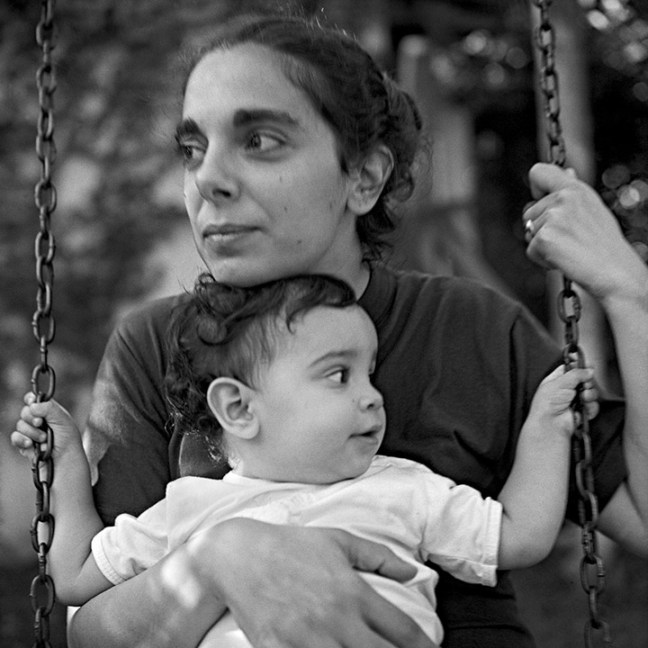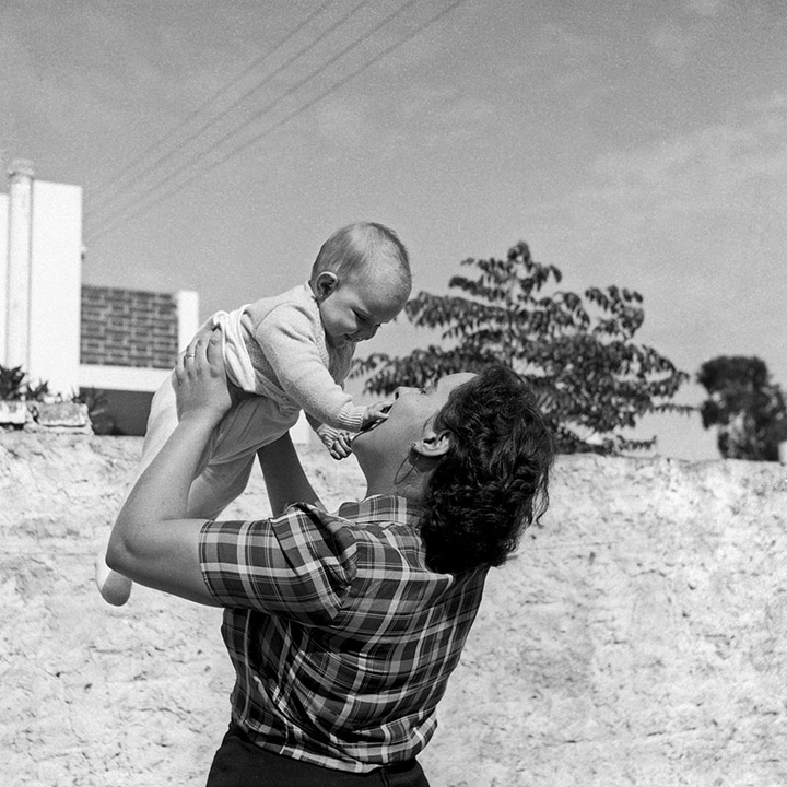 La foto de ella acunándola no existe en los álbumes familiares; seguramente estaba sin revelar, en la Rollei que también se llevaron quienes los secuestraron.