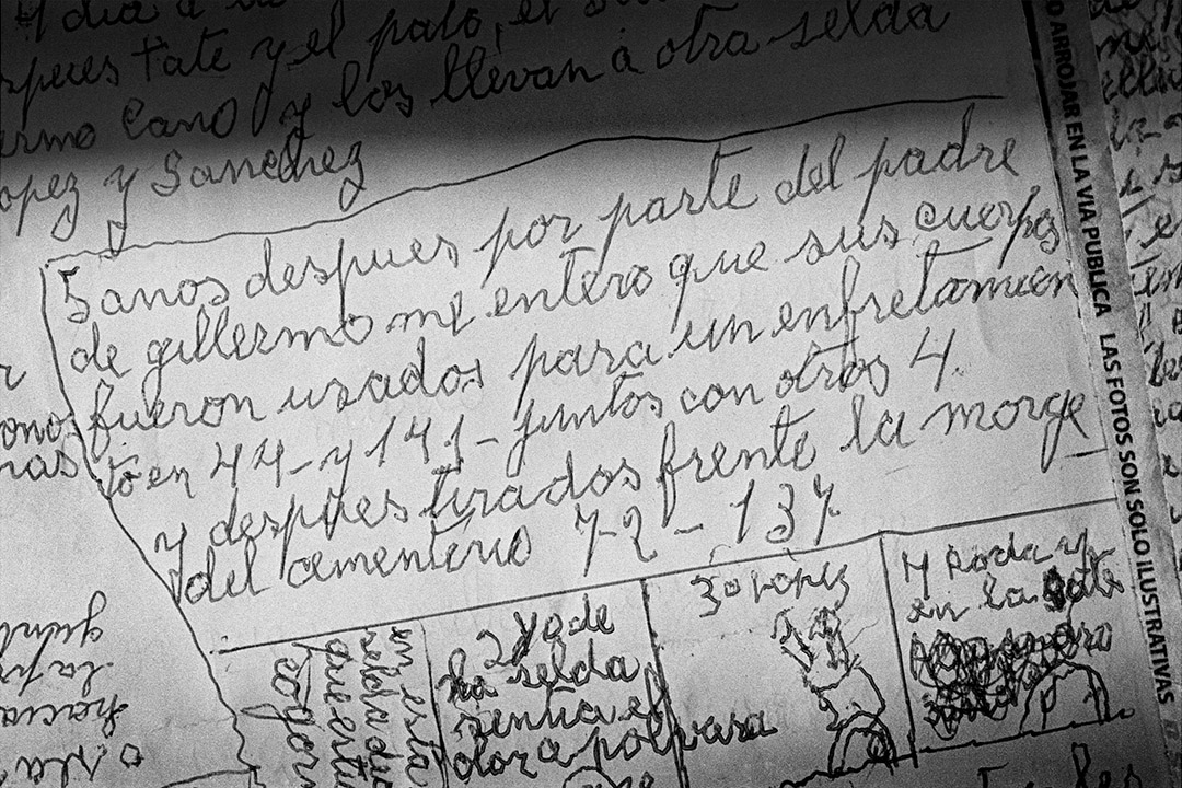 A partir de ese momento empieza un período de veintitrés años. En esta carpeta están los detalles de todas las búsquedas que hice: destacamentos militares, departamento de policía, comisarías, embajadas, obispados, notas, entrevistas, habeas corpus, la visita de la OEA; y en todos los casos la respuesta fue ‘no tenemos ninguna noticia, no están detenidos, no’.