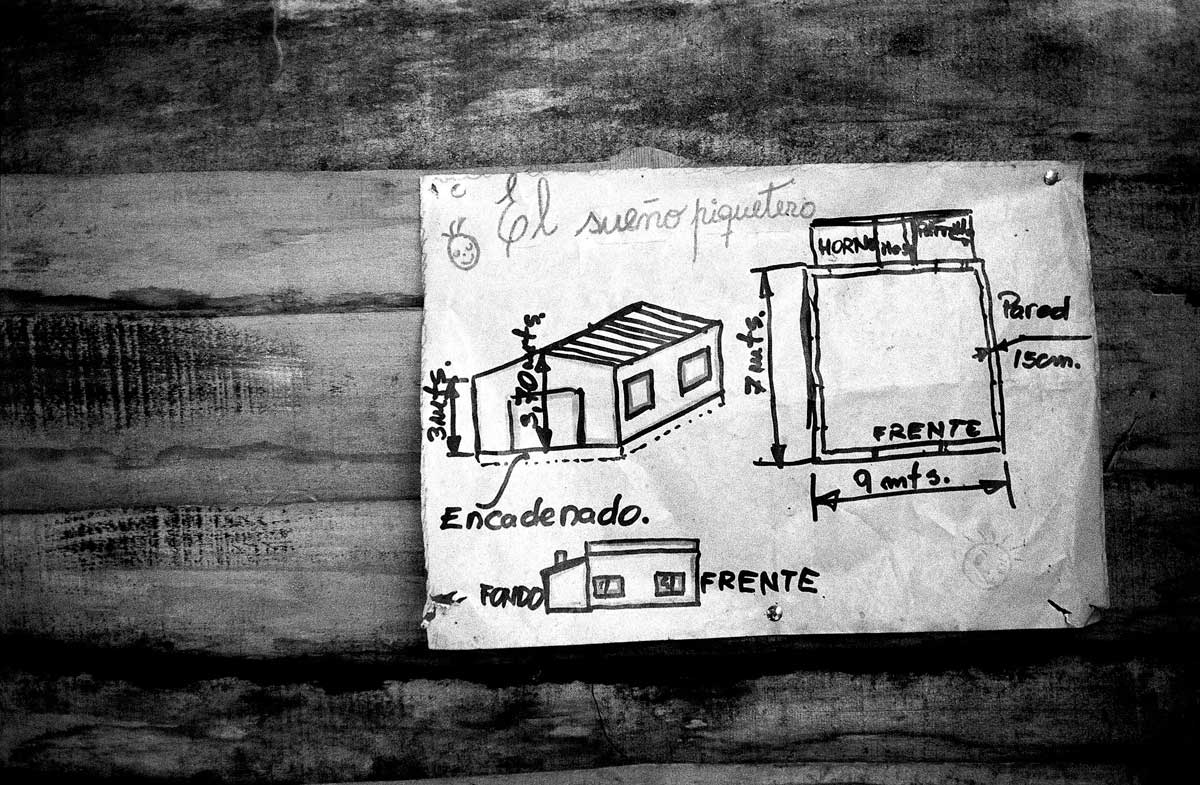 El sueño piquetero. Plano de una construcción en una de las paredes del comedor del MTP, Movimiento de trabajadores Piqueteros de Escobar.