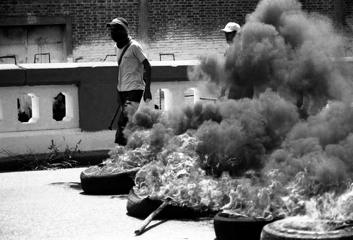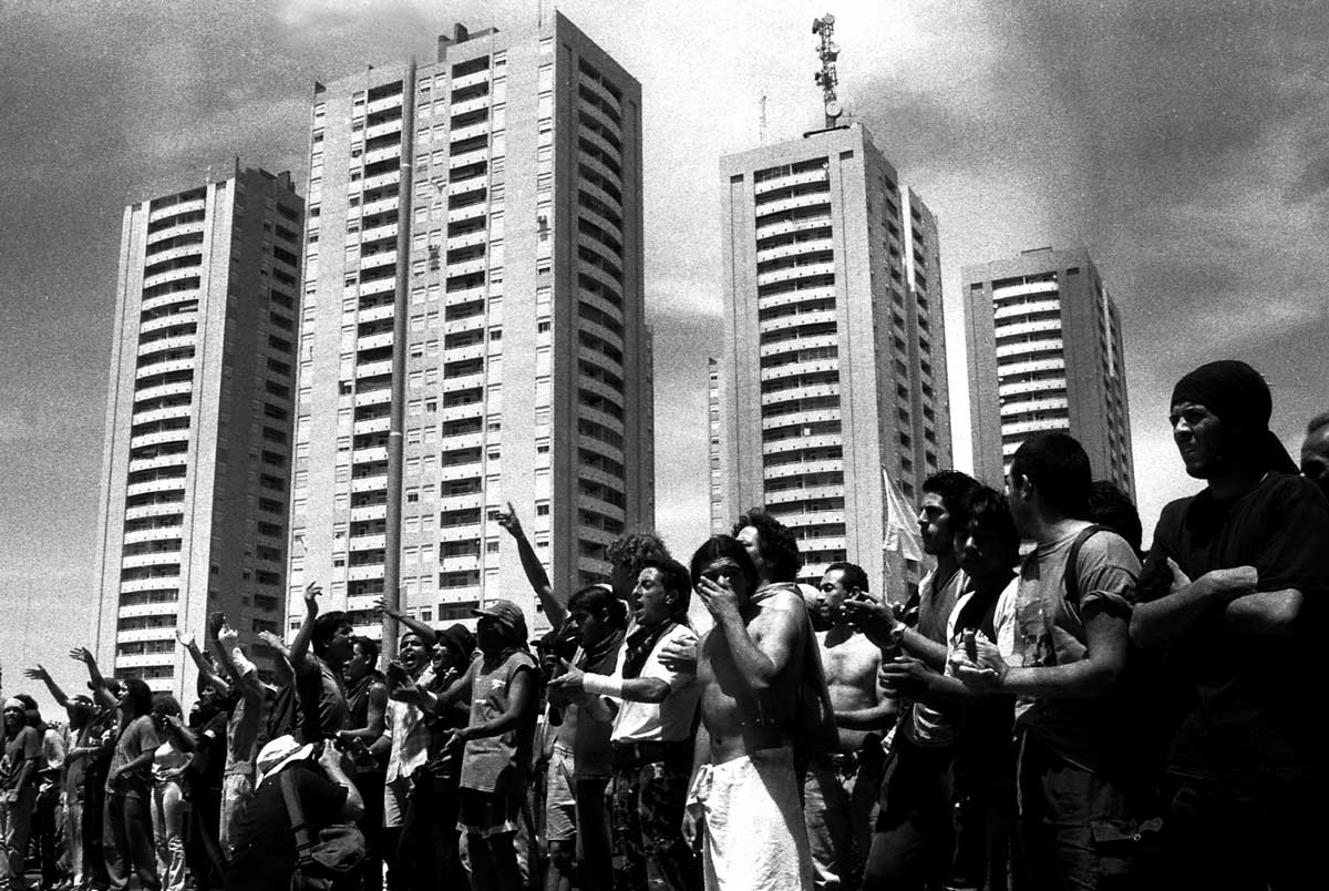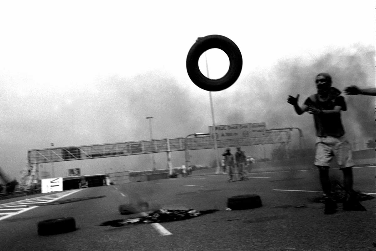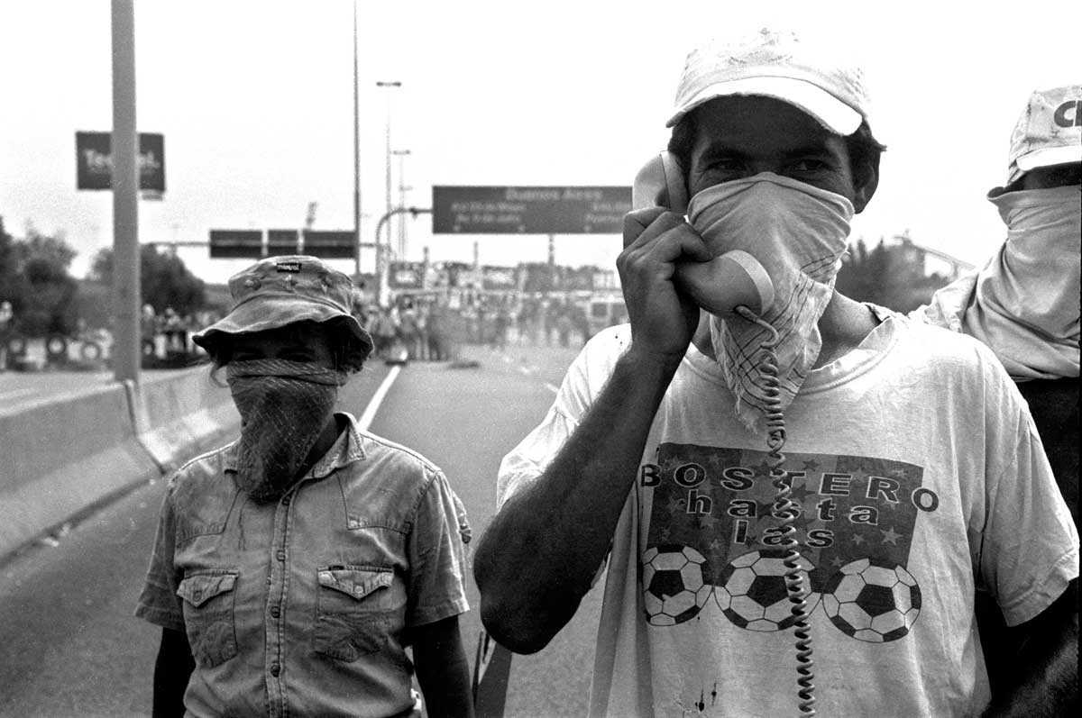 Piquete en la autopista Buenos Aires – La Plata. Los cortes de ruta de los movimientos de desocupados sufrían a veces violentos intentos de desestabilización. Ese día un automovilista intenta forzar el piquete atravesando las barricadas a alta velocidad después de mostrar un arma en la primera línea del piquete. Pocos días antes, Javier Barrionuevo había muerto en el Jaguel en circunstancias parecidas.
