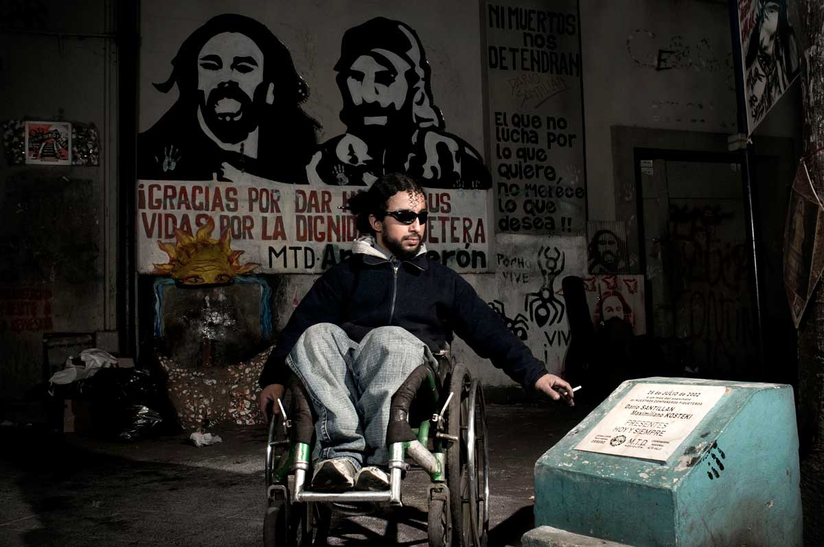 Marcial es músico. La mayoría del tiempo da talleres en los barrios donde trabaja su movimiento de desocupados. El 26 de Junio del 2002 fue uno de los 33 heridos con balas de plomo. A él le dieron en la pierna. «Sentí una ola de muerte que venía de aquel lado, donde estaba la policía».