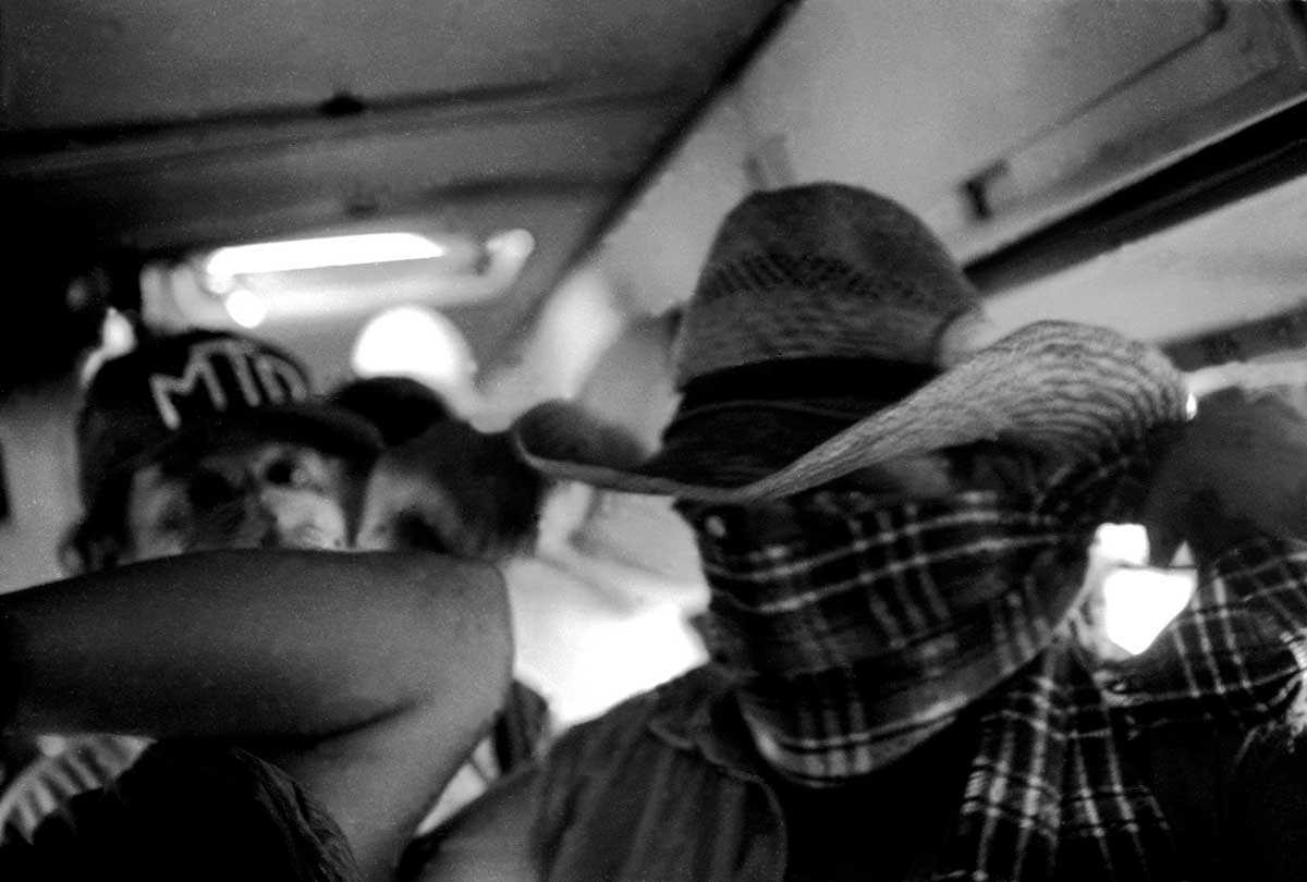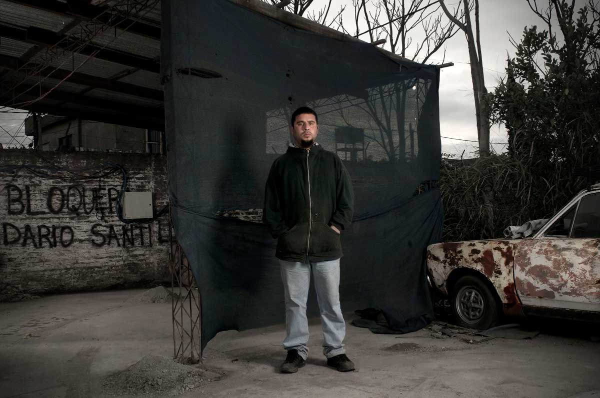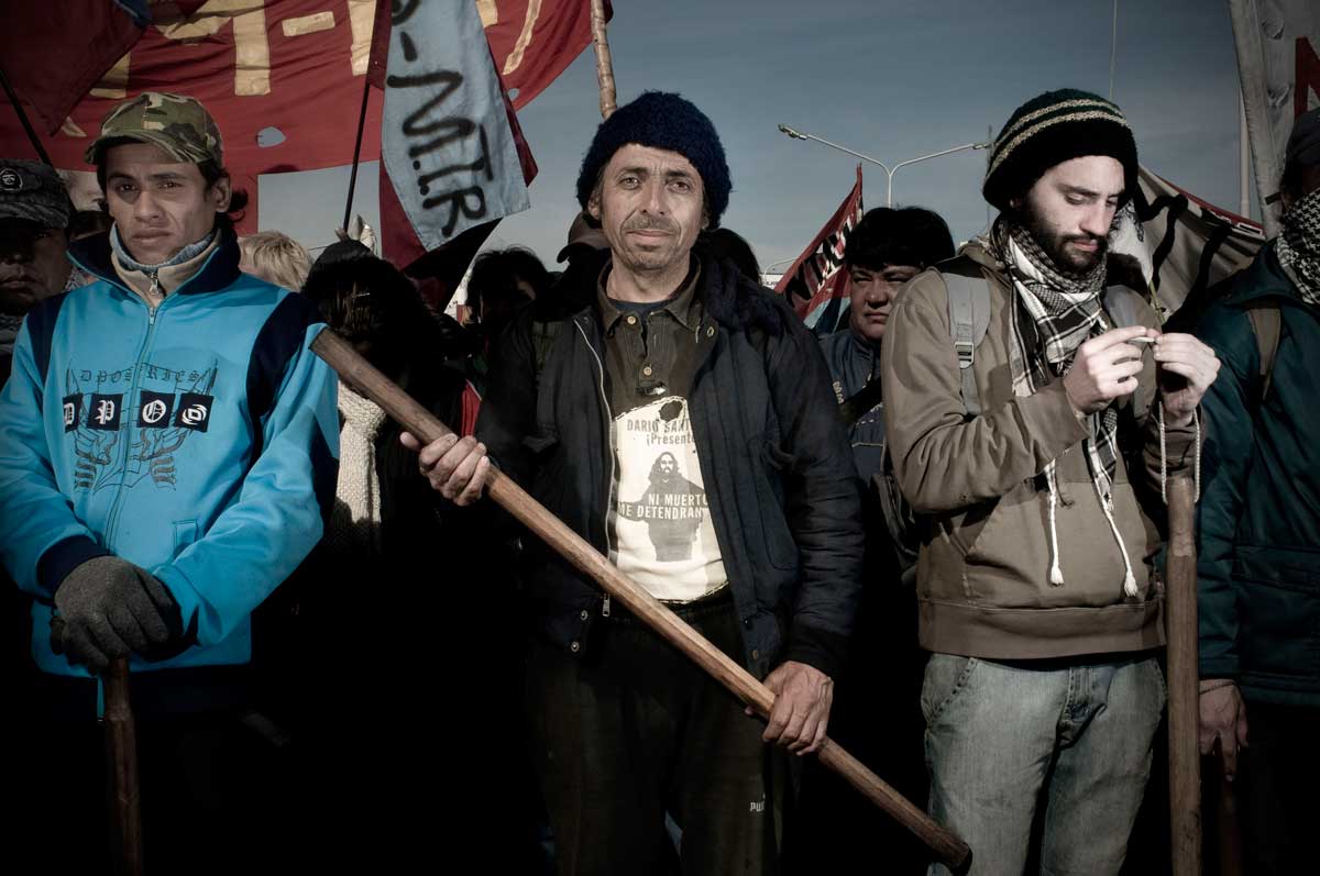 Darío Santillán era un referente en el barrio La Fe de Monte Chingolo. El MTD de Lanus era en ese momento de efervescencia social, un lugar de visita muy concurrido por los extranjeros militantes y los activistas altermundialistas. Darío era uno de los encargados en ocuparse de ir a buscarlos y cuidarlos para que no les pase nada con todas sus cámaras por las calles del barrio. Siempre predispuesto y muy atento, habíamos pensado en regalarle esta foto, sacada de arriba de un micro antes de ir a un corte de ruta, para agradecerle la atención. La primer copia que salió del laboratorio blanco y negro el mismo día de su asesinato está hoy en poder de Alberto Santillán, su padre.