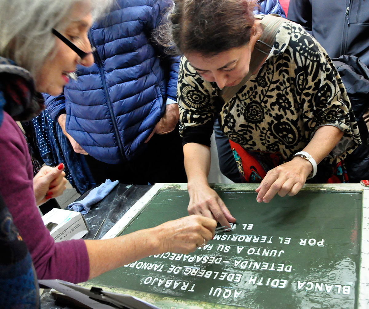 “En Barrios por la Memoria y Justicia las baldosas son el material donde plasmamos la memoria del terrorismo de Estado con su rastro de desaparición forzada, tortura y muerte, fríamente planificada para imponerle a toda una sociedad un modelo económico y político, con mayoría de excluidos. Lo hacemos a través de reponer los nombres de nuestros desaparecidos, allí donde dejaron huella, tratando de rescatar y reivindicar sus historias.”