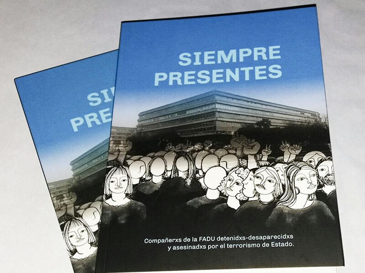 “Siempre Presentes” es un libro-homenaje a lxs 117 estudiantes, docentes y no docentes de la Facultad de Arquitectura, Diseño y Urbanismo de la UBA detenidxs, desaparecidxs y asesinadxs por el Terrorismo de Estado. La iniciativa surgió de la Comisión de Derechos Humanos de la Facultad junto al Programa de DD.HH de la Biblioteca Nacional.