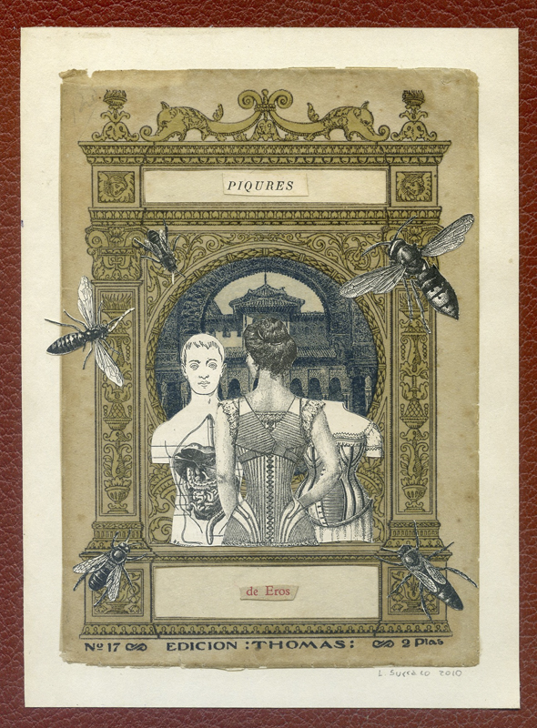La potencia collagista derivó en un más allá del “CdC”. Entre encuentro y encuentro producía en casa, mi casa. El collage invadió el departamento: pad de cortes, set de trinchetas, bisturíes, pegamentos, libros antiguos, estantes con cientos de boletos, cajas, mapas, postales, fotos encontradas en las calles, papeles de regalo, hilos, plumas, tintas acuarelas… Indagué, investigué y emulé.