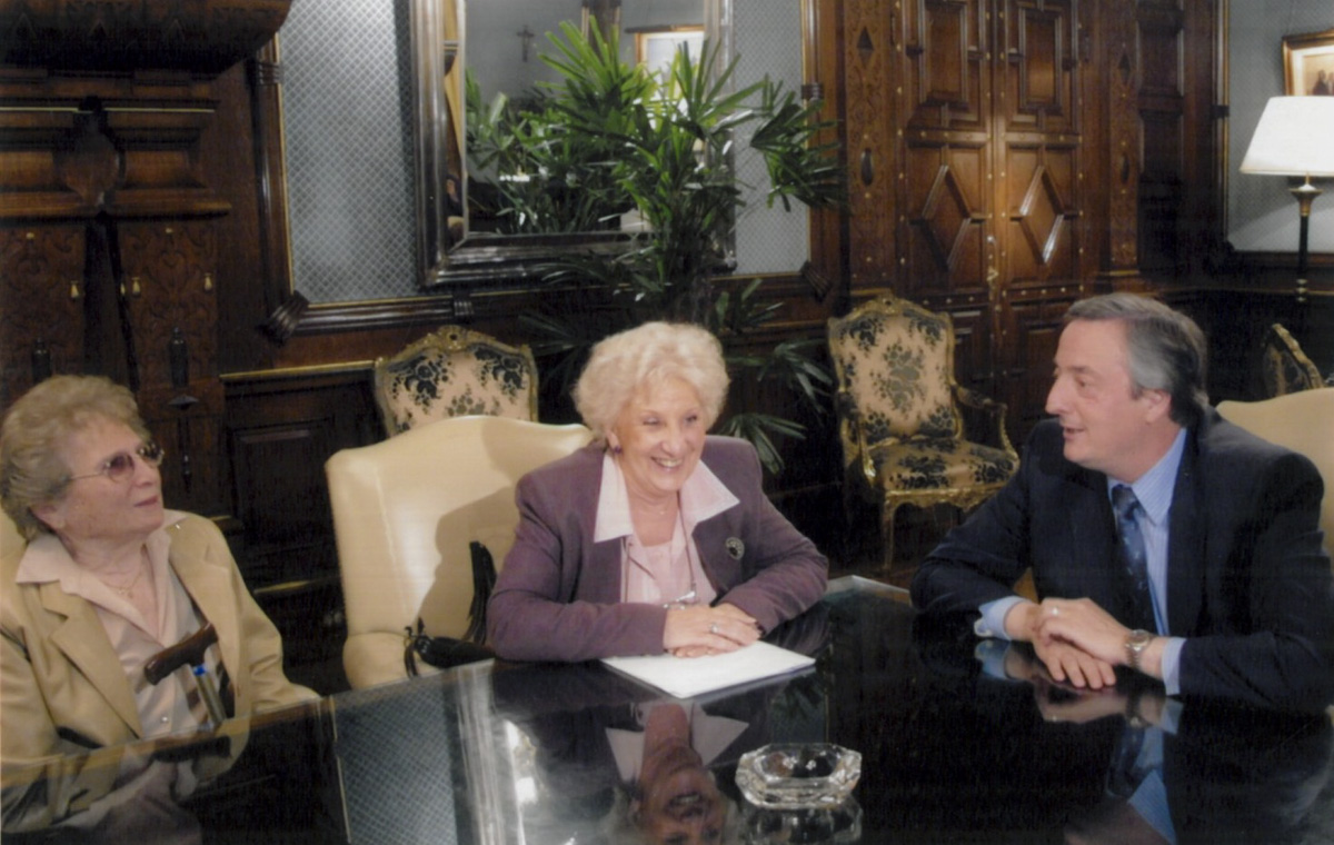 Rosa Roisinblit y Estela Carlotto con Néstor Kirchner