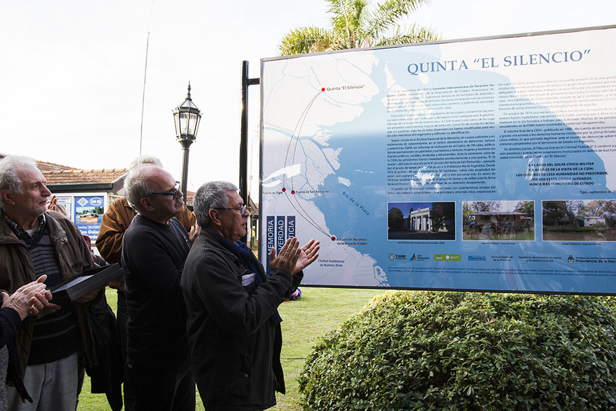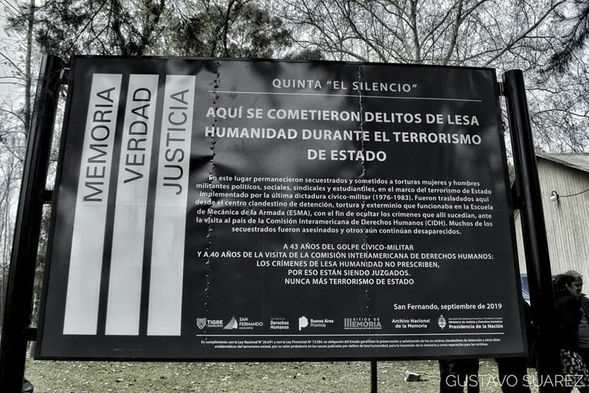 Estación fluvial de Tigre. Son algo más de las nueve de la mañana. Cerca de ochenta integrantes de organismos de derechos humanos estamos reunidos en círculo, a punto de embarcarnos en dos lanchas colectivas. El objetivo es acompañar a sobrevivientes de la Escuela de Mecánica de la Armada (ESMA) y a sus familiares, a descubrir un cartel que señala a la Quinta “El Silencio”, ubicada en la tercera Sección del delta de San Fernando, como lo que fue: un centro clandestino de detención durante la última dictadura.