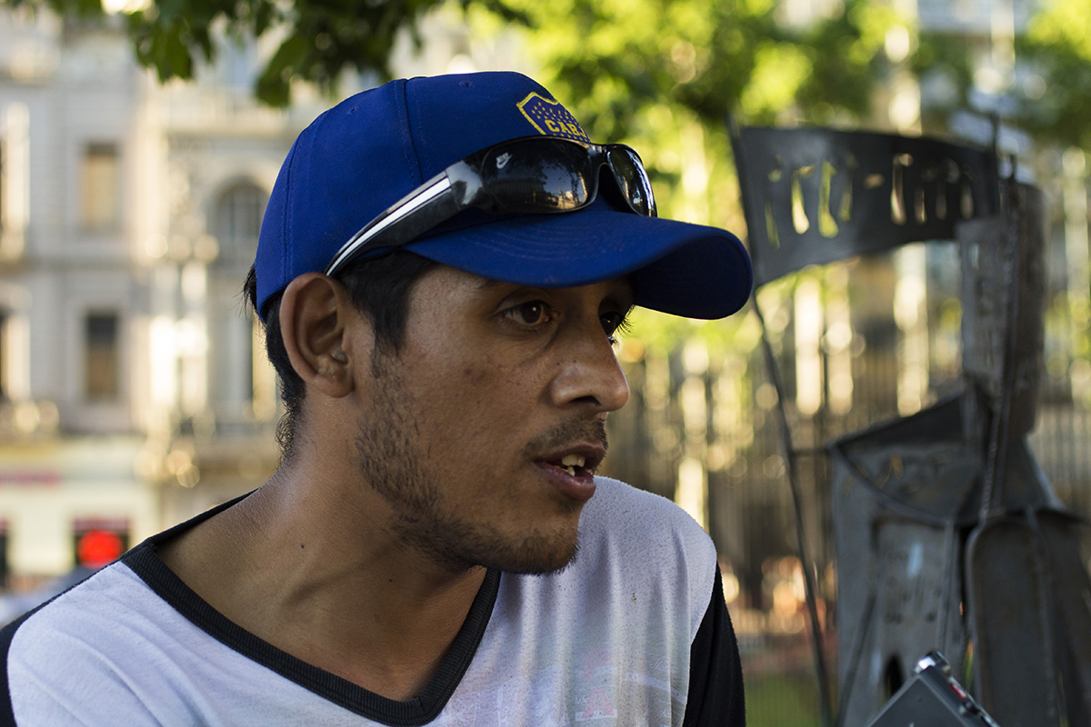 -Éramos mi vieja y yo antes de perder nuestro departamento. A mi viejo hace tiempo que no lo veo, qué se yo, supongo que vive… Y a quién iba a recurrir, yo a los políticos no le creo a ninguno, ni a éstos ni a los que están por venir. Yo confío en mi laburo, en lo que yo pueda dar como trabajador. Pero así ¿qué hacés? Si yo tuviera un lugarcito sé que me puedo mover de otra manera, puedo dar una dirección, mal que mal que la gente vea que yo vivo ahí, bah! Pienso eso…