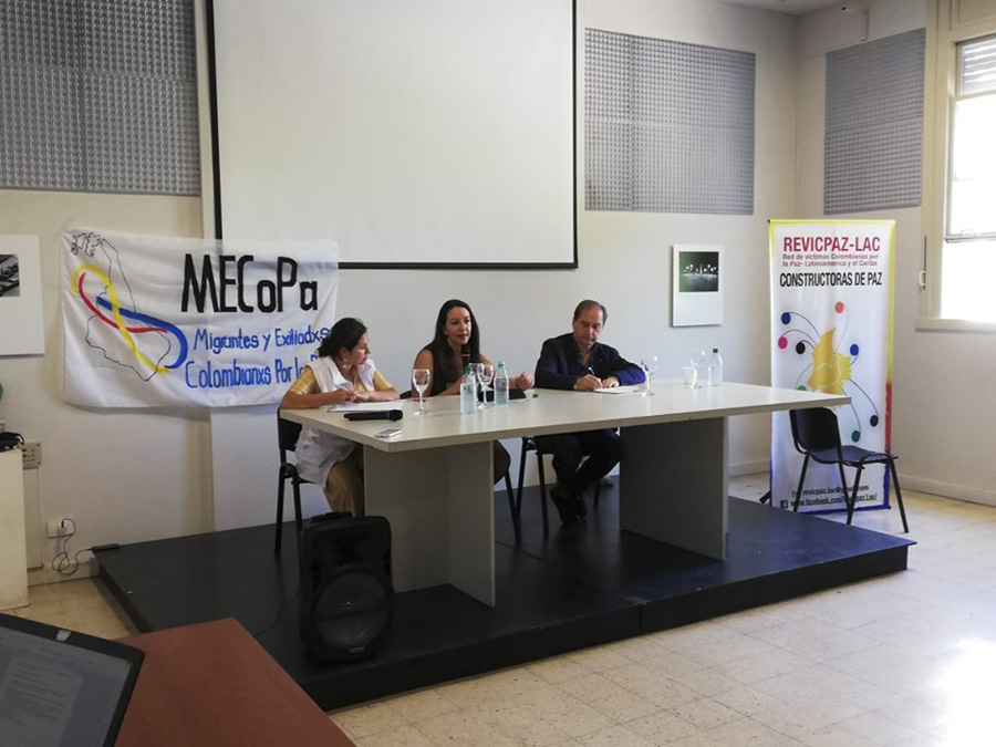 El colectivo Migrantes y Exiliados/as Colombianos/as por la Paz -MECoPa- surge en el año 2014 como proceso de organización de refugiados y exiliados/as colombianos/as en Argentina para aportar en la búsqueda de la paz, la memoria, la verdad y la justicia de la población en el exterior afectada por el conflicto. Actualmente apoya el proceso de implementación del enfoque extraterritorial de la Comisión para el Esclarecimiento de la Verdad (CEV) y la documentación de casos de desaparición para entregar a la Unidad de Búsqueda de Personas dadas por Desparecidas (UBPD).
