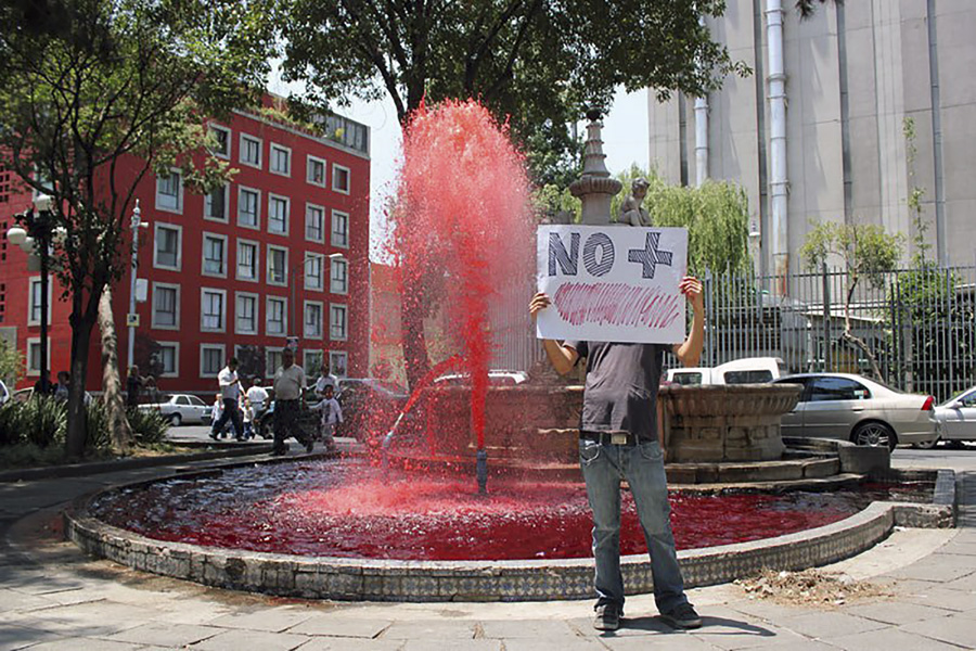 En México, en 2011, en el marco del Movimiento por la Paz con Justicia y Dignidad, se realizó la acción "Paremos las balas, pintemos las fuentes", recordando la participación y la responsabilidad del gobierno en varios crímenes que no habían tenido un proceso judicial claro. Para asombro de los peatones que circulaban por la capital durante el último fin de semana de mayo, los activistas tiñeron de rojo el agua de la famosa estatua de “Diana la Cazadora” en el Paseo de la Reforma.