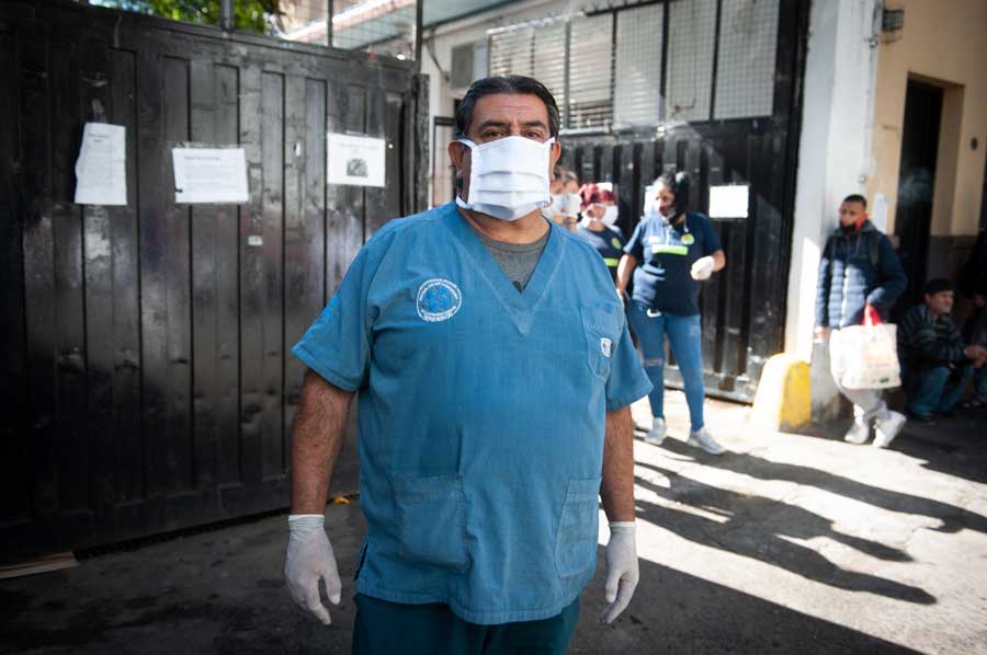 Enfermero trabajando en el comedor popular de la Confederación de Trabajadores de la Economía Popular (CTEP).
