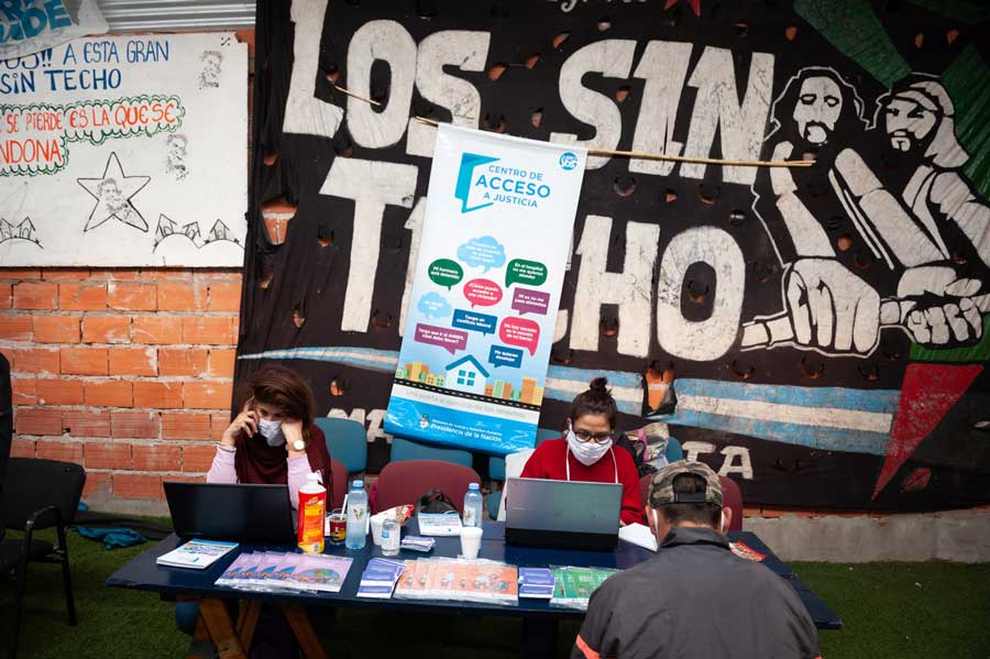Trabajadorxs de los Centros de Acceso a la Justicia (CAJ) del Ministerio de Justicia y Derechos Humanos de la Nación atienden a la comunidad en un operativo realizado en conjunto con ANSES y PAMI.