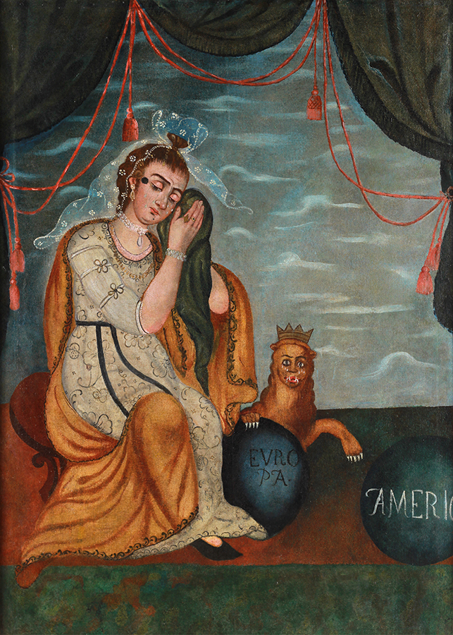 España y la monarquía española llorando por América. Óleo s/tela. Alto Perú, hacia 1810-1820. Donación Igor Ben Lelczuk. Colección MIFB