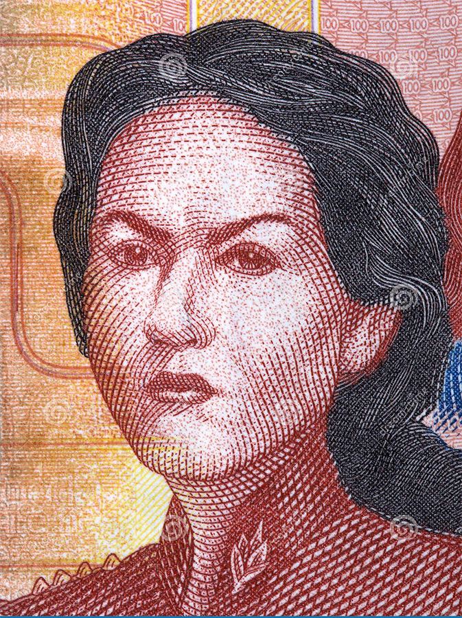 Juana Azurduy de Padilla, luchadora por la independencia de América, retrato en un billete de 100 bolivianos.
