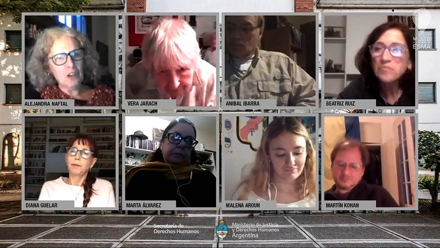 Asimismo, continúan actividades que ya tienen un espacio ganado en la agenda de la memoria. Por caso, la Visita de las 5, una propuesta que lleva adelante el último sábado de cada mes el Museo Sitio de Memoria ESMA y que se aggiornó al formato virtual. El 27 de junio, bajo el título “Compromiso social y militancia estudiantil: los valores de una generación”, la “visita” fue en homenaje a Franca Jarach (desaparecida el 25 de junio de 1976) y participaron de un conversatorio su mamá Vera, Madre de Plaza de Mayo; el abogado y compañero de Franca en el Nacional Buenos Aires Aníbal Ibarra; Beatriz Ruiz y Diana Guelar, co-autoras con Vera Jarach del libro “Los chicos del exilio”, la vocal del Centro de Estudiantes del Nacional Buenos Aires Malena Arouh, y Marta Álvarez, sobreviviente de la ESMA. La Visita de las 5 siempre es narrada por un cronista, que en esta oportunidad fue Martín Kohan. También estuvieron presentes en el Zoom la directora del espacio, Alejandra Naftal y el secretario de Derechos Humanos Horacio Pietragalla Corti.