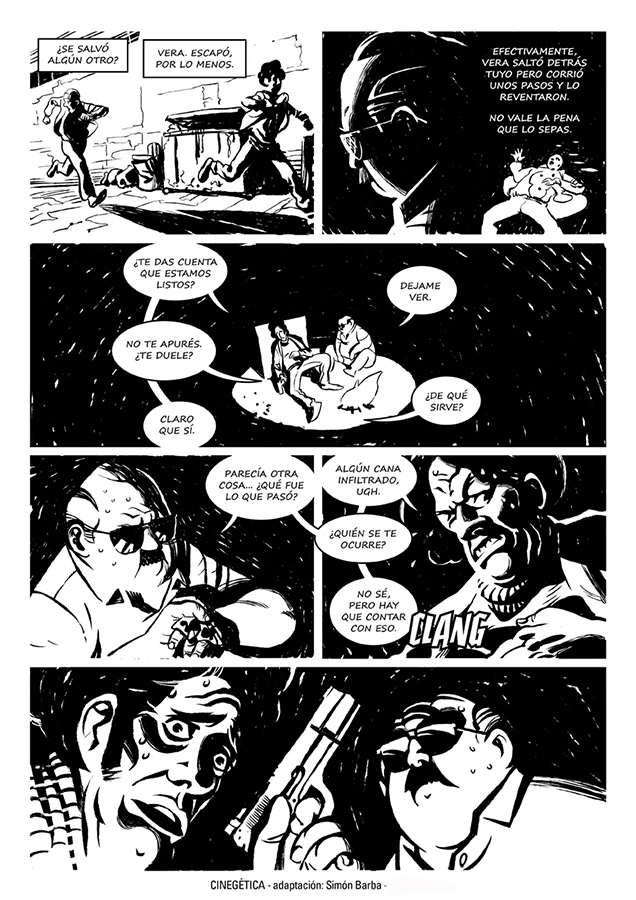 “Sintético, resuelto sólo con los mínimos elementos necesarios. Todos ellos esenciales, jugando una parte indispensable en el desarrollo de la historia”. Así describía el guionista e historietista Patricio Delpeche los aspectos narrativos que motivaron la elección del cuento Cinegética.