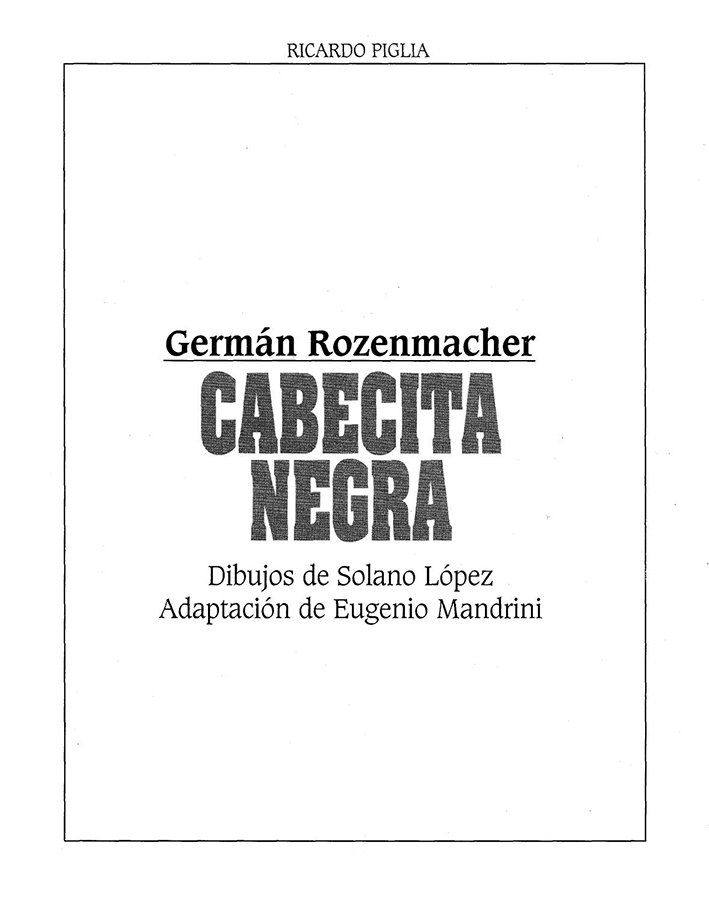 El 6 de agosto de 1971 murió en Mar del Plata el escritor, dramaturgo y periodista Germán Rozenmacher. Tenía 35 años. Compartimos aquí -en formato de historieta- su cuento más recordado: Cabecita negra (con guión de Eugenio Mandrini y dibujos de Francisco Solano López). El texto introductorio es de Ricardo Piglia. Ambas producciones fueron publicadas primero en la revista Fierro (1985) y luego en el libro de Piglia La Argentina en pedazos (1993).