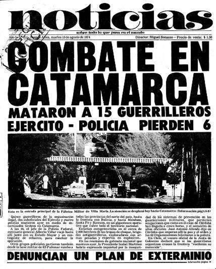 El 12 de agosto de 1974 en Catamarca, cerca de Capilla del Rosario, fueron fusilados 14 miembros del ERP. Formaban parte de un grupo que intentó copar el Regimiento Aerotransportado 17, pero fueron sorprendidos por la policía. Algunos de los militantes fueron detenidos, otros se dieron a la fuga y el grupo que fue cercado en Capilla del Rosario fue ejecutado por las fuerzas del Ejército luego de deponer las armas. Con motivo del aniversario de la masacre, Haroldo publica un fragmento del libro Detenidos-aparecidos. Presas y presos políticos de Trelew a la dictadura (Biblos, 2007), de Santiago Garaño y Werner Pertot, que narra el episodio centrándose en la historia de Yeyo, uno de los militantes que logró huir y sobrevivir.
