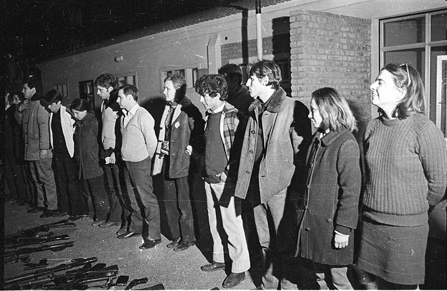Los 19 presos políticos, integrantes de organizaciones político militares, entregan sus armas a la Marina en la puerta del aeropuerto con la condición de la preservación de su integridad. 15 de Agosto de 1972. Provincia del Chubut. Aeropuerto de Trelew.