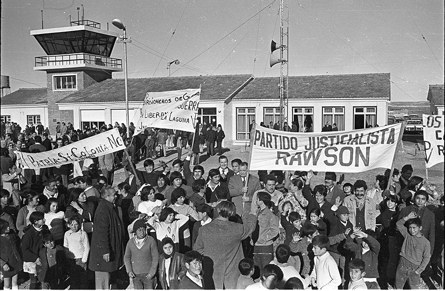 Organizaciones y simpatizantes reciben a Héctor José Cámpora. 9 de Julio de 1972. Provincia del Chubut Aeropuerto de Trelew.