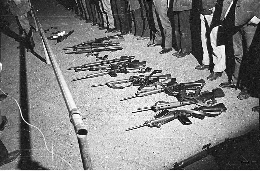Los 19 presos políticos integrantes de organizaciones político militares, entregan sus armas a la Marina en la puerta del aeropuerto con la condición de la preservación de su integridad. 15 de Agosto de 1972. Provincia del Chubut. Aeropuerto de Trelew.