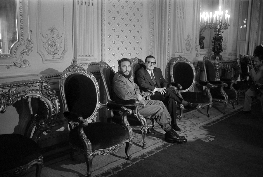 Fidel Castro (en su visita a Chile) y Salvador Allende en el hoy desaparecido Salón de Honor del palacio de La Moneda, 1971.