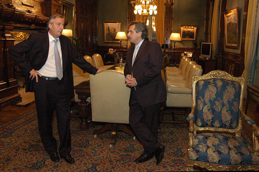 Néstor y Alberto Fernández, quien fuera su Jefe de Gabinete, en el despacho presidencial.