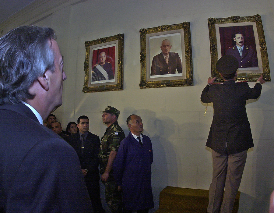 En el 38 aniversario del golpe de Estado, Néstor Kirchner en su calidad de comandante en jefe de las Fuerzas Armadas ordenó “Proceda” al general Roberto Bendini para indicar que descuelgue los cuadros de Jorge Rafael Videla y de Reynaldo Bignone, ex presidentes de facto, del Colegio Militar, 24 de marzo de 2004.