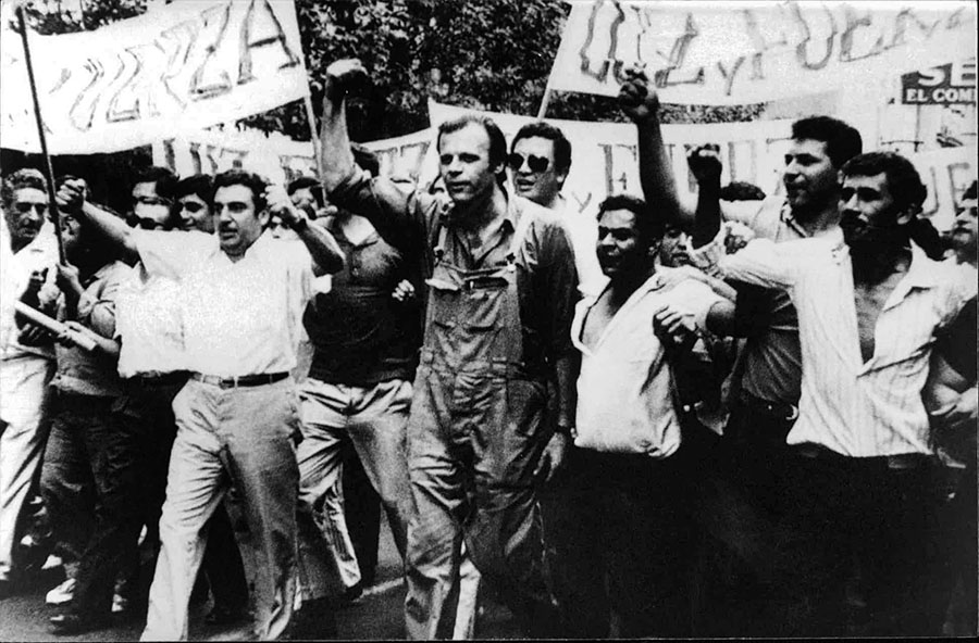 Columna de sindicato de Luz y Fuerza encabezada por Agustín Tosco. Manifestación en contra de la dictadura. Mayo de 1969.