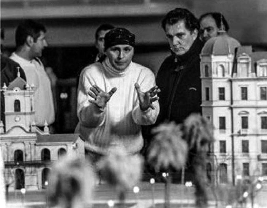 Leonardo Favio y la maqueta escenográfica de “Perón, sinfonía de un sentimiento”