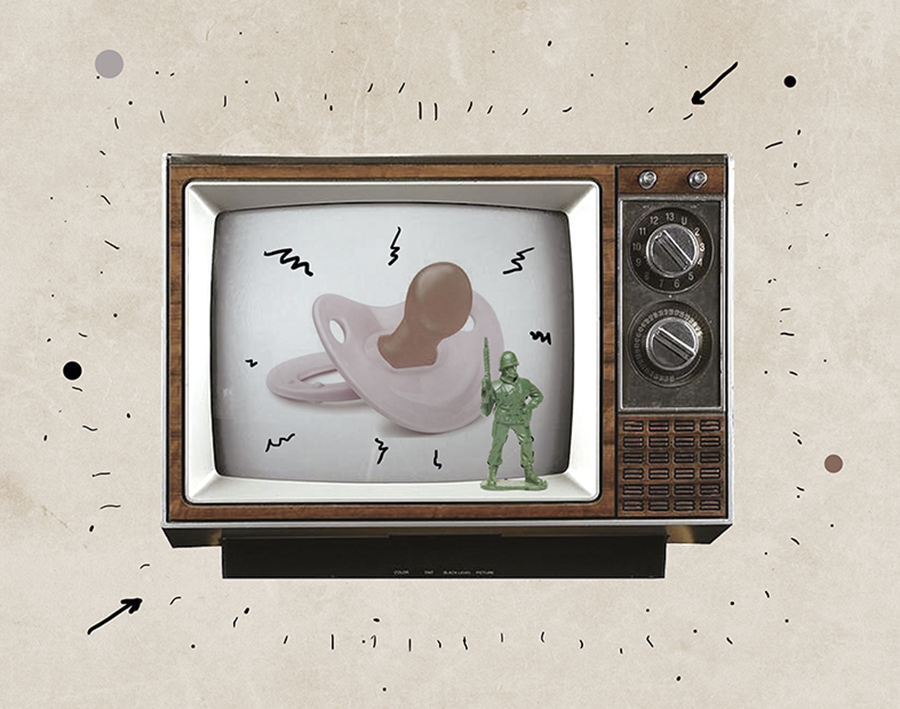En silencio imagino cómo sería tener un soldadito (los de Malvinas en mi imaginario) parado con un arma al lado del TV cambiando el canal.