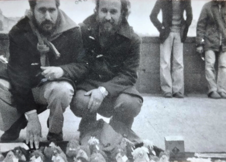 A la única que veíamos era a Lili Massaferro y a Juan Gelman, que yo lo conocía de pibe porque era amigo de mis hermanos. Tuve que trabajar, iba a tener una nena. Tuve que ocuparme de la casa. Tuvimos que hacer todo por nuestro propio esfuerzo. Primero vivíamos en un departamento en Roma. Mi hermano vivía ahí con su mujer y sus tres hijos. Porque a él le pusieron bombas, lo amenazaban todos los días. Le habían puesto una bomba en la casa, una bomba en el estudio. Los primeros meses vivimos en un departamentito que nos prestó una amiga, en Ostia, cerca del mar, una casa de verano y era invierno, así que nos quedamos ahí hasta el verano. Después nos buscamos una casita en un pueblo que se llamaba Morlupo, a una hora de Roma. Era un pequeño pueblo de campesinos. Ahí vendía en la calle. Cuando salí de acá me llevé un muñequito de esos rellenos de alpiste que le había regalado a Susana. Un día se me ocurrió empezar a hacer esos muñecos y andaban más o menos. Después tomamos la decisión con estos dos compañeros de hacer una gira vendiendo, Florencia, Bolonia, Nápoles, Venecia. Las compañeras vendían los muñecos y nosotros madreperlas. Dormíamos en unos albergues donde teníamos que dormir separados, las mujeres en un lado y los hombres en otro. Fuimos conociendo algunos vinculados al COSPA, al comité de solidaridad. Pero en esa etapa hacíamos lo propio.