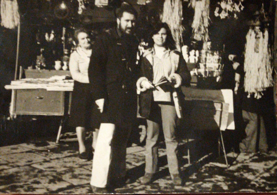 En un momento decidimos con Susana irnos a España. Nos fuimos a Madrid. Vendiendo en la calle conocimos a unos argentinos que vivían en España e iban a vender a Italia, hacían unos mocasines para bebés de cuero, tipos re macanudos y nos dijeron “vénganse”. Al final les dimos plata a estos compañeros para que nos alquilaran un departamento. Me fui primero en tren, porque había huelga de aviones. Fui en tren con pasaporte italiano. Me esperaba este amigo con otro compañero. Fede y Susana ya se habían ido antes a España. Llegué ahí y me habían alquilado un departamento en Vallecas, un barrio obrero, popular, de Madrid, una urbanización. Esperé que viniera Susana con la nena. Al toque empezamos a vender, primero con los muñecos, después compramos biyuta. También unos cuadritos naifs. Después vendía flores con Martín Gras, plantas. De eso vivíamos. Vendíamos todo el año en Madrid y después íbamos a la playa, fuimos a Andalucía y después a la costa brava.