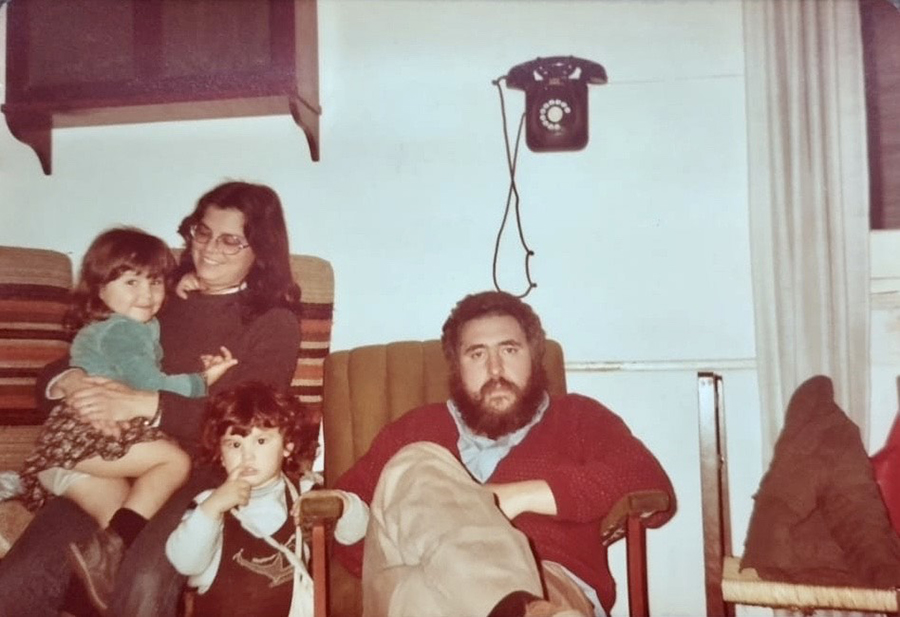 El Nono junto a Susana, María y Manuel en el departamento de Vallecas. Madrid. España. 1982.
