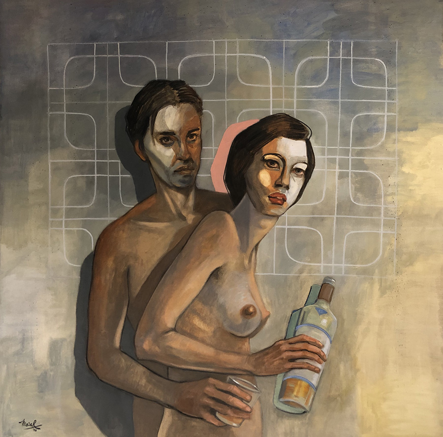 Víctor Moser (2020) “Cómplices” de la serie “De amantes” (óleo sobre lienzo, 90x90)