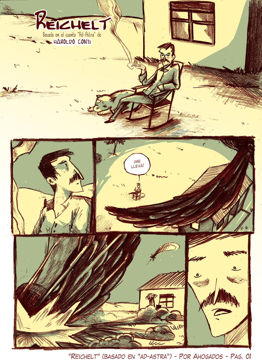 Historieta Reichelt basada en la obra de Haroldo Conti Ad-Astra. Página 1.