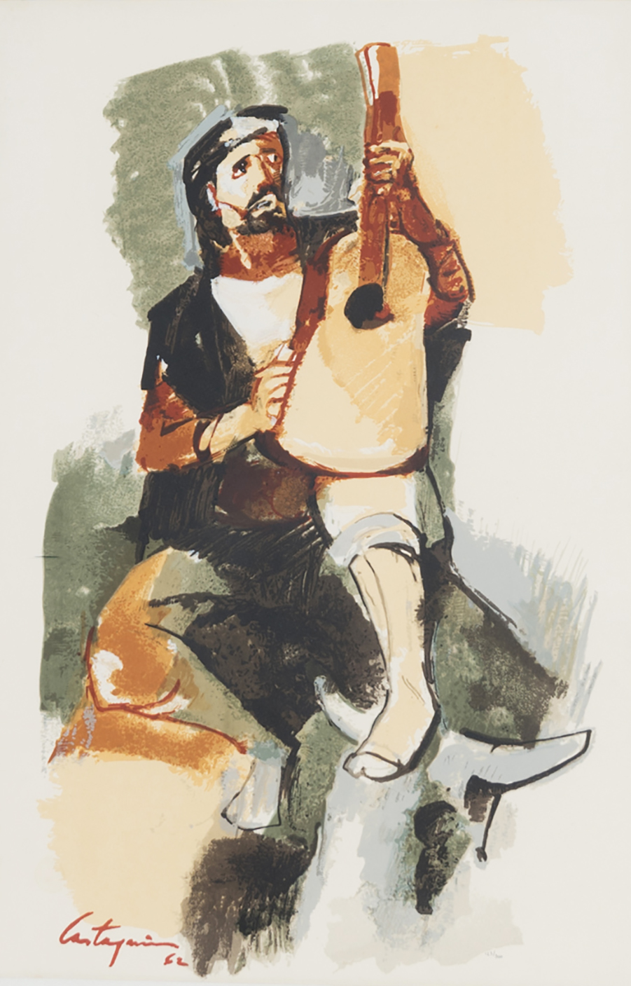 Martín Fierro con Guitarra, grabado de Juan C. Castagnino, 1962. Fuente: https://fnartes.gob.ar
