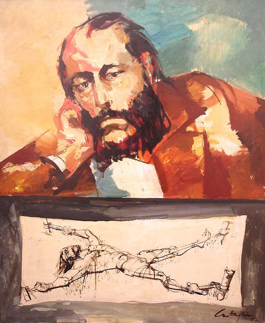 Gaucho estaqueado de Juan C. Castagnino, ilustración en el Martín Fierro de José Hernández editado por Eudeba,1962. Fuente: http://www.bnm.me.gov.ar