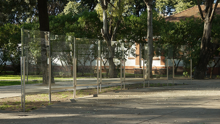 Carta abierta a la Junta Militar por Rodolfo Walsh obra de León Ferrari emplazada en el predio Espacio para la Memoria y Derechos Humanos (ex ESMA) 2012. Foto: Archivo Ente Público