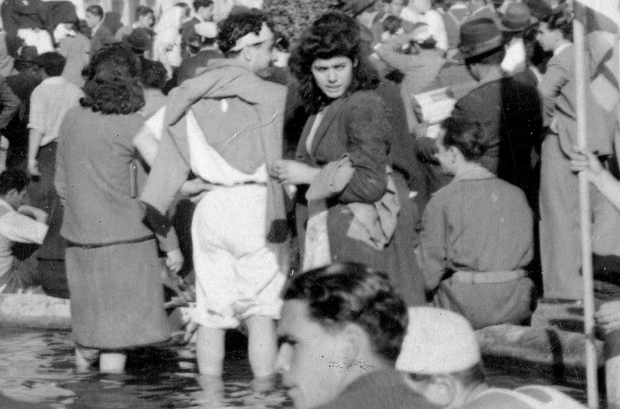 Pero observando bien la fotografía –esta y otras del mismo día–, vemos diversidad y heterogeneidad social y cultural. Ese día muchos trabajadores pidieron sacos prestados para ir a la Capital (Chávez, 1996; Michelini, 1994). Eso habla de la incorporación de las normas dominantes de la época. Al mismo tiempo, después de largas caminatas y calor, algunos se refrescaron en la fuente, lo que habla a su vez de un uso más libre del cuerpo, no había contradicción entre una cosa y otra. Juan y su hermano, por ejemplo, se refrescan los pies en el agua con el saco puesto.