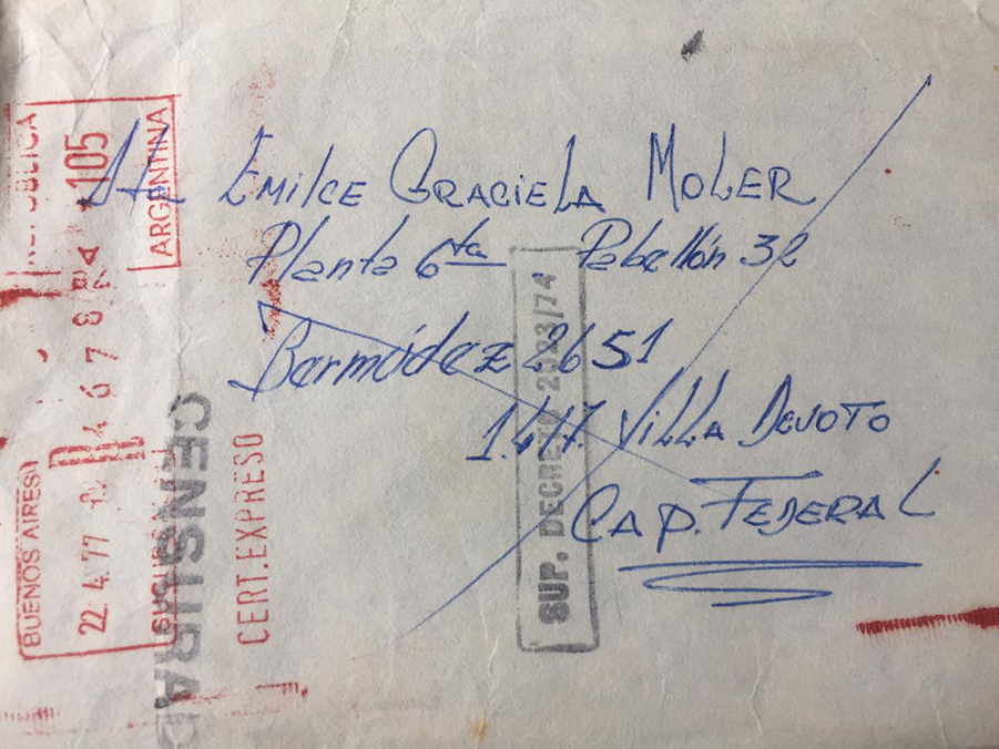 Emilce Moler, sobreviviente de los CCD Pozo de Arana y Pozo de Quilmes. Esta es una de las cartas que su familia y su novio le enviaron durante su detención política en la cárcel de Villa Devoto. La misma está fechada el 22 de abril de 1977.