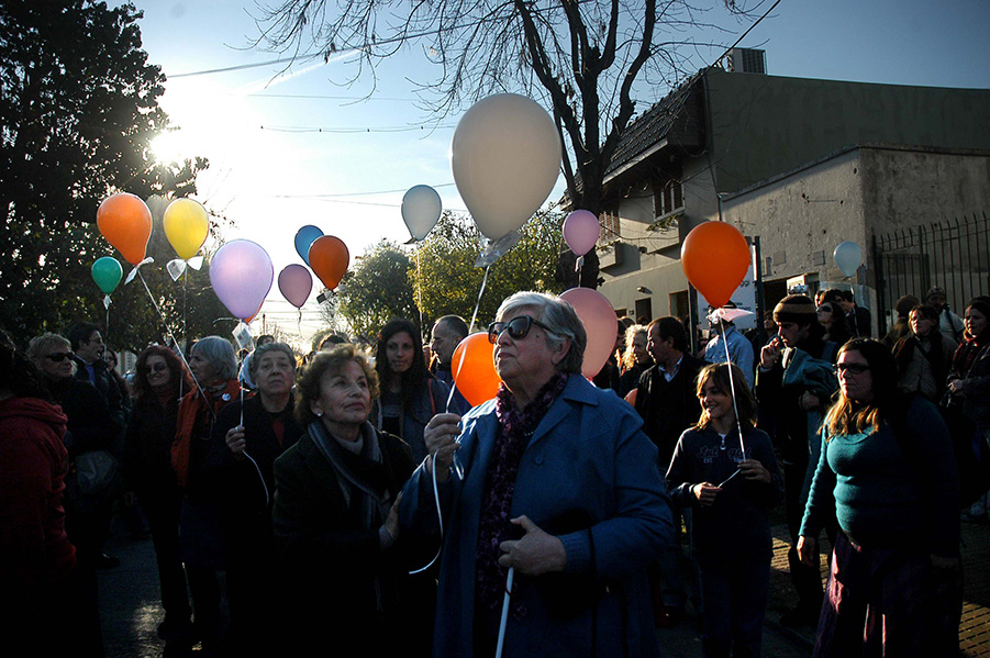 Chicha Mariani en la suelta de globos por el cumpleaños número 34 de Clara Anahí. Foto: Eva Cabrera