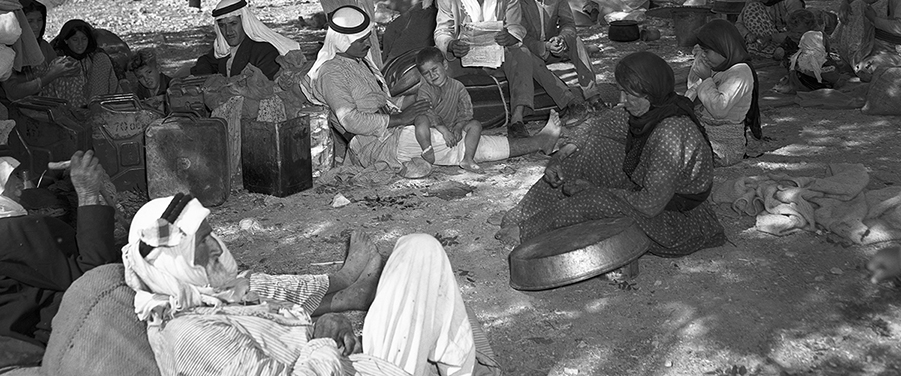 Foto de archivo del 1 de enero de 1948 de un grupo de refugiados palestinos esperando el transporte para proseguir el viaje tras haber cruzado la frontera. Foto: Archivo ONU.