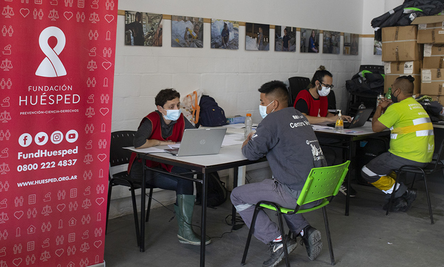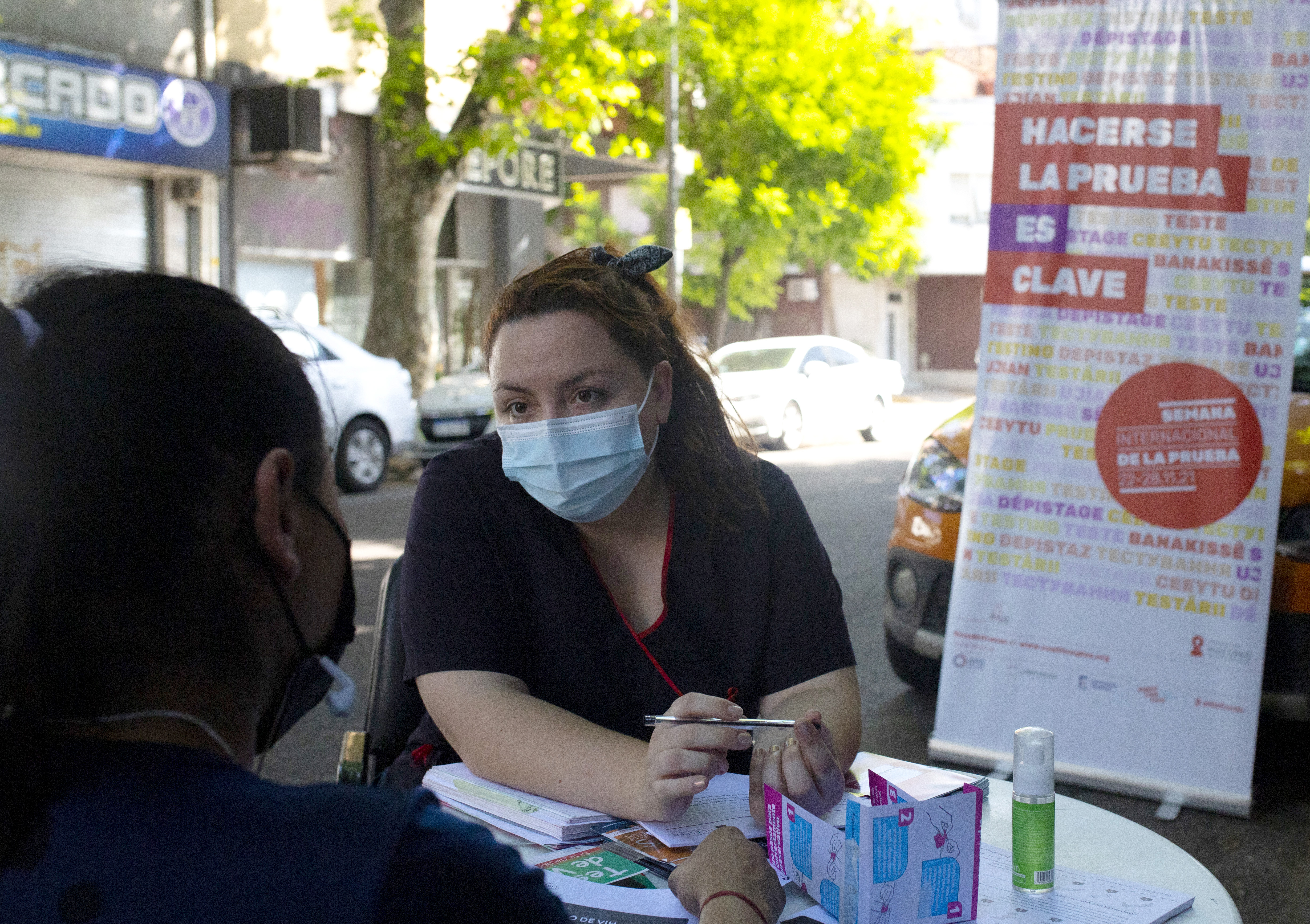 Campaña Semana Internacional de la Prueba del VIH, a la que se sumó la Fundación Huésped, entre el lunes 22 y el lunes 29 de noviembre. La campaña es una iniciativa de Coalición PLUS, una red internacional de organizaciones que trabajan en VIH y las hepatitis virales. A lo largo de la semana se llevaron a cabo distintas acciones de testeo gratuito de VIH en poblaciones especialmente afectadas por el virus como migrantes, usuarios de drogas, trabajadoras sexuales, personas trans y recuperadores urbanos. También se brindó información y, a aquellas personas cuyo test fue positivo, se les ofreció la derivación al sistema de salud y acompañamiento. Foto: Constanza Lupi