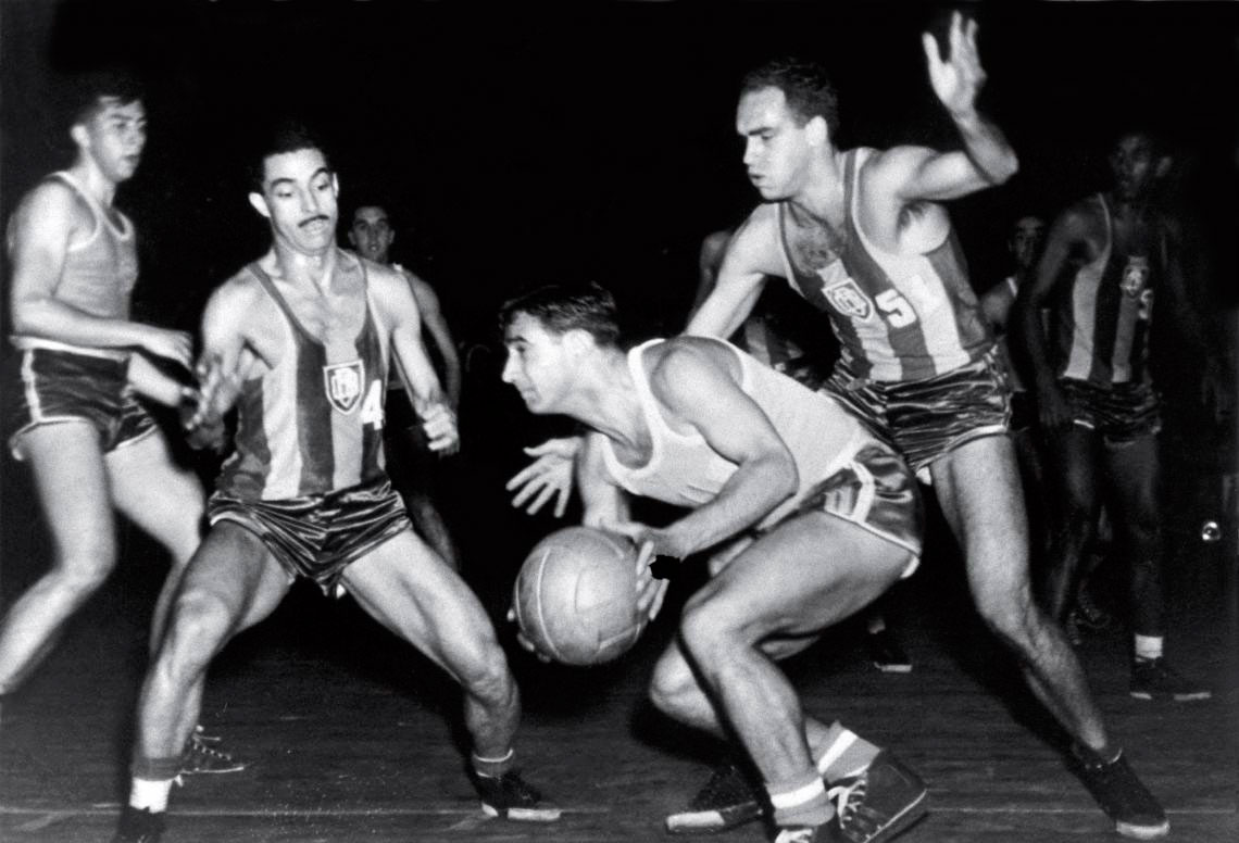 Ricardo González, capitán del equipo argentino, en uno de los partidos del Mundial de Básquet 1950. Fuente:https://www.elgrafico.com.ar/