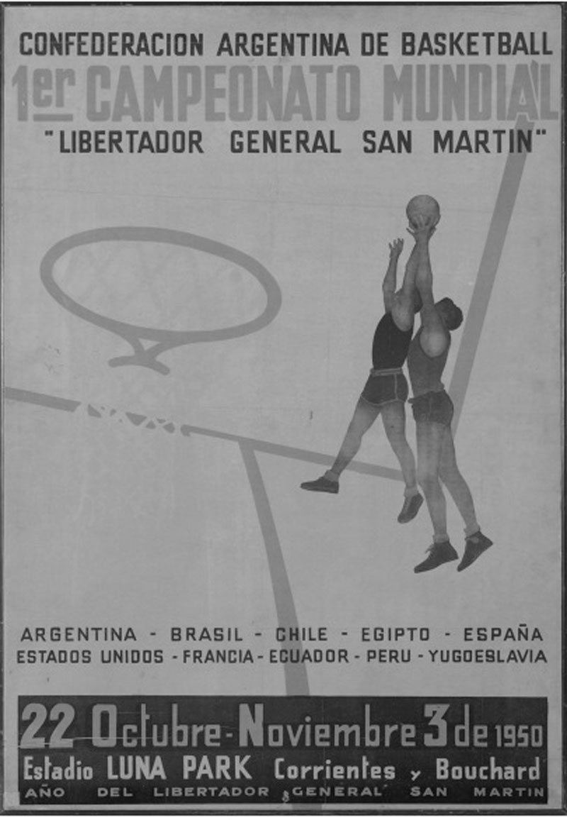 Afiche del Mundial de Básquet de 1950. Fuente: https://www.argentina.basketball/