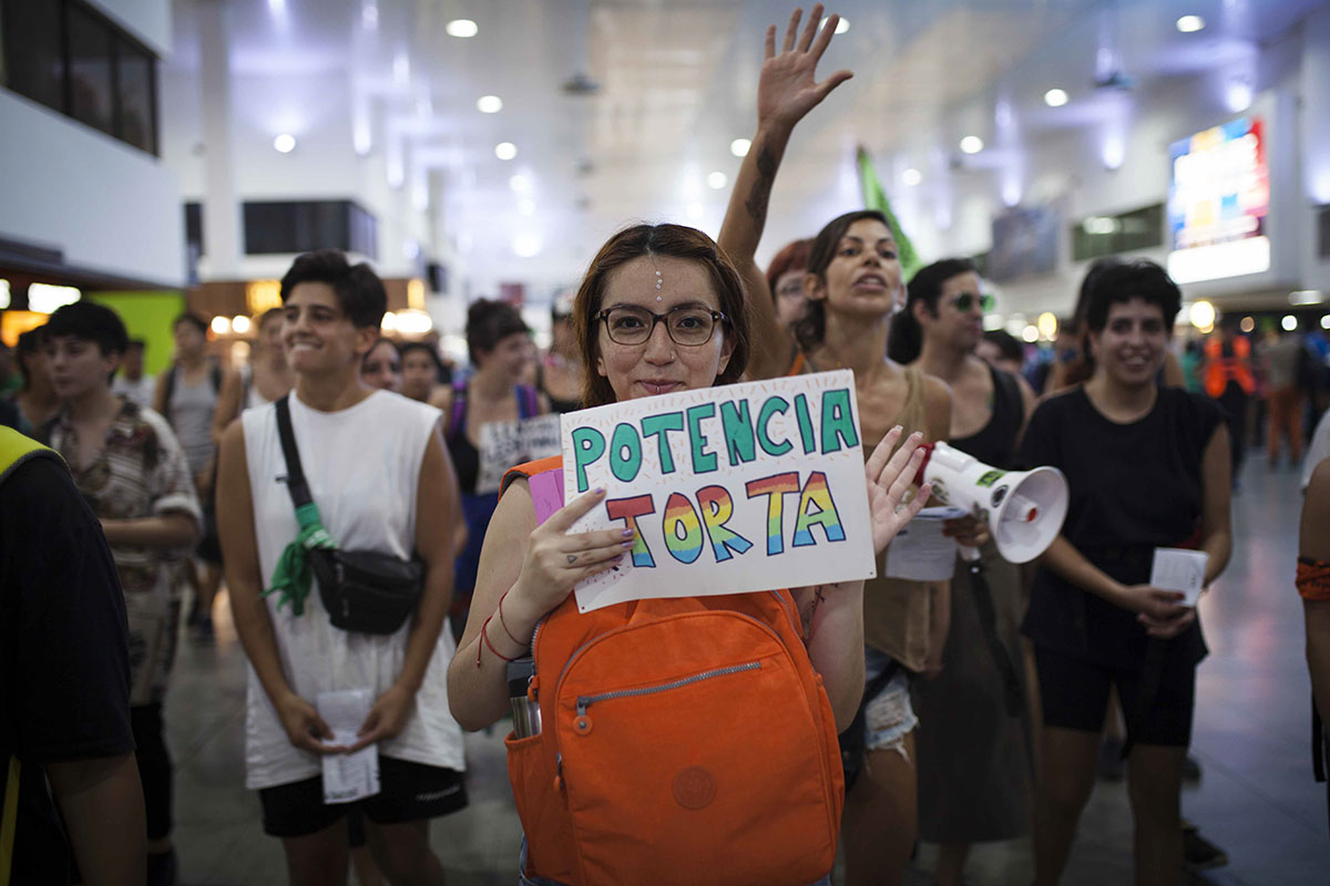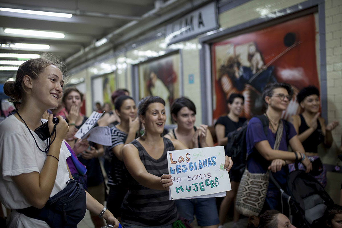 No obstante, continúan existiendo indicadores preocupantes de criminalización de lesbianas pobres y de clase obrera. El procesamiento de Eva Analía De Jesús, Higui[3], en los tribunales de San Martín en 2016 bajo el cargo de “homicidio” por defenderse de una violación correctiva en medio de un ataque a golpes que pudo haberle costado la vida si no se defendía, y el de Marian Gómez, albañila y pintora, por resistirse a ser detenida ilegalmente en la Ciudad Autónoma de Buenos Aires, luego de que un empleado del metro/subterráneo de Buenos Aires fantaseara que estaba maltratando a su esposa, cuando en realidad se estaban despidiendo para ir a trabajar, hablando de sus cosas y fumando un cigarrillo. El empleado llamó a un policía amigo para que se “ocupe” de Marian Gómez. La escena terminó con la joven lesbiana masculina en el piso, con el policía apretándole la espalda con una pierna y todo el peso de su cuerpo, y la chica gritando que no la dejaba respirar. La jueza Marta Yungano condenó a Marian Gomez por lesiones (a una mujer policía, de cuyo cabello se tomó para no caer al piso) y por resistencia a la autoridad, el día del 50º aniversario de la revuelta de Stonewall[4]. La Cámara Nacional de Casación Penal finalmente absolvió a Marian Gómez, que fue acompañada por una gran movilización social, a cuyo frente estuvieron organizaciones de lesbianas de todo el país, feministas y mujeres militantes de partidos políticos de izquierda.